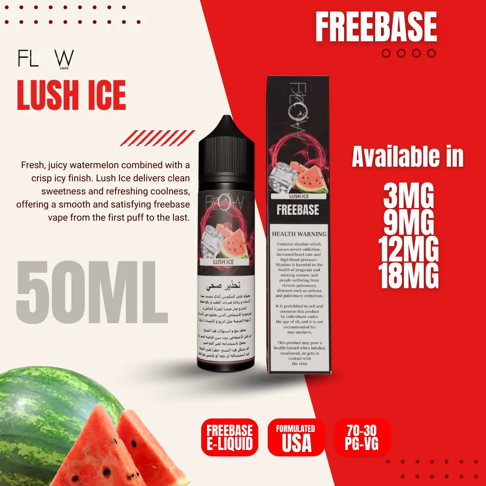 Fresh, juicy watermelon combined with a crisp icy finish. Lush Ice delivers clean sweetness and refreshing coolness, offering a smooth and satisfying freebase vape from the first puff to the last.