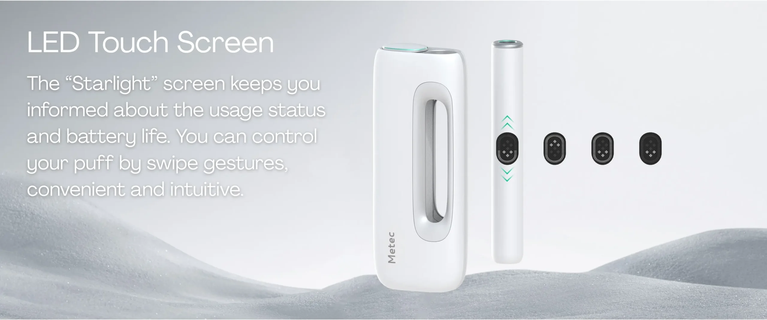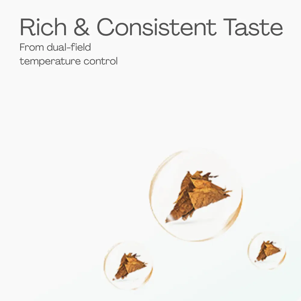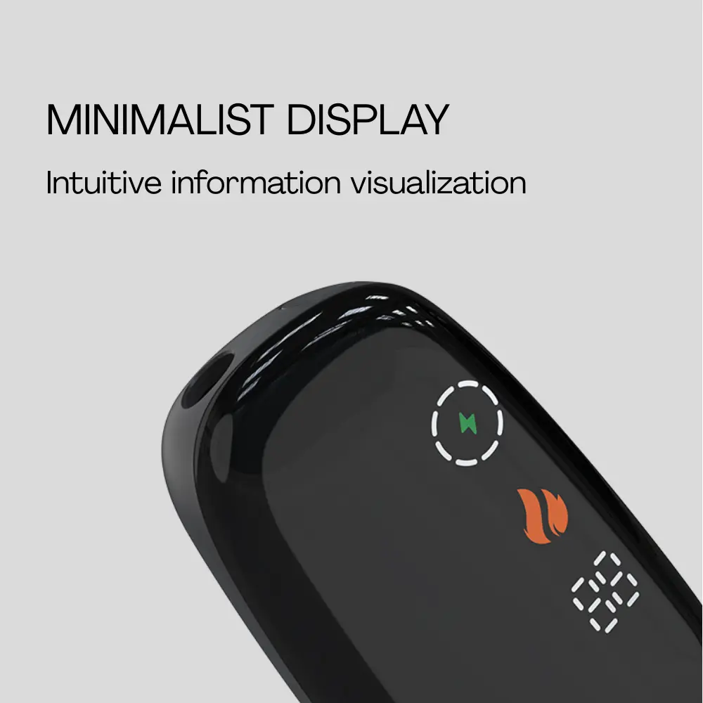 The elegant light that is consistent with body design can display information of battery, mode, heating progress, remaining puff. Simple yet not simplistic.
