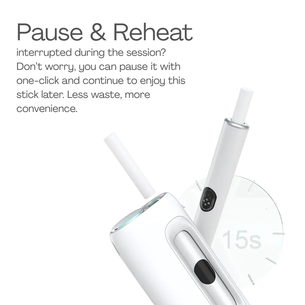 We have redefined the usage form of 2 pieces device on SURA. You can use the heating pen independently for a maximum of two sessions or use it docking in the charging case. Whole for power, part for light.